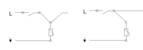 b) 從電源開關(guān)聯(lián)線到保護(hù)器,還從電源開關(guān)聯(lián)線到負(fù)載端。這種方法適用于負(fù)載電流100A以上的配電箱。聯(lián)接到保護(hù)器的導(dǎo)線截面不受負(fù)載電流的影響,但長度不得過長與接地線的長度總和不得超過500mm(見圖4)